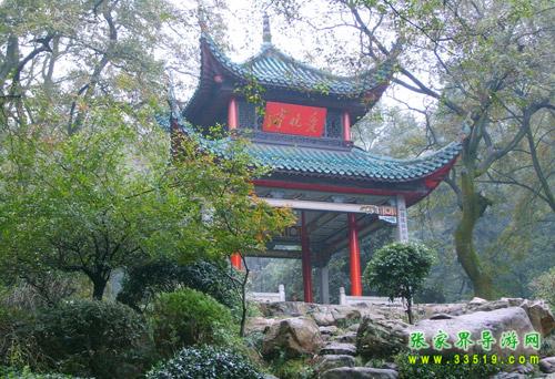 愛晚亭位于岳麓書院后青楓峽的小山上,八柱重檐,頂部覆蓋綠色琉璃瓦,攢尖寶頂,內柱為紅色木柱,外柱為花崗石方柱,天花彩繪藻井,蔚為壯觀。清乾隆五十七年(公元一七九二年)山長羅典所建。原名“紅葉亭”,又名“愛楓亭”。后據(jù)唐代詩人杜牧《山行》而改名為愛晚亭,取“停車坐愛楓林晚,霜葉紅于二月花”之詩意。