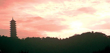 高閣對(duì)琴堂,淡抹煙光,年來風(fēng)物換滄桑,翹首飛鴻何處落,一片斜陽。