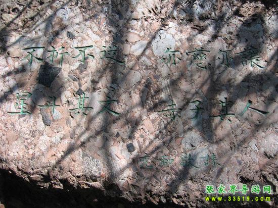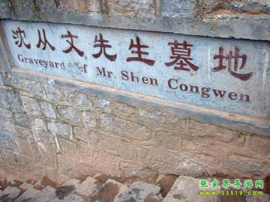 從古城的東門城樓外的虹橋前沿江下行3華里路程,到得聽濤山,從山道向右拾階而上,不遠處便能看見一塊石碑,上寫“沈從文墓地”5個遒勁大字。再不遠處置有一塊豎長的石碑,上面刻有畫家黃永玉為表叔沈從文題寫的碑文:“一個士兵不是戰(zhàn)死沙場,便是回到故鄉(xiāng)。”墓地建在一塊狹長的小草坪上,沒有墳冢,只樹有一塊6噸多重的天然五彩石,成為沈從文墓獨特的標(biāo)志。石正面鐫刻的是沈從文富有哲學(xué)內(nèi)涵的手跡:“照我思索,能理解我;照我思索,可認識人。”石背面是沈從文的姨妹、美國耶魯大學(xué)教授張充和撰書,沈從文侄女婿、中央美術(shù)學(xué)院著名雕塑家劉煥素教授鐫刻的挽聯(lián):“不折不從,星斗其文;亦慈亦讓,赤子其人。”其聯(lián)句尾四字:“從文讓人”透射出先生一生的高風(fēng)亮德。沈從文墓地清幽靜謐,四周綠樹環(huán)抱,墓地上和四周的草坪上擺放著無數(shù)的野花和竹編的一些蝴蝶,這些都是前來膜拜的旅人們留下的。