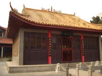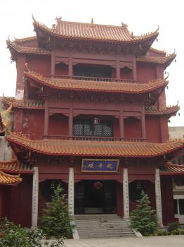 主佛靠背,是千手觀音,雕塑精美, 全身耀金。 相傳塑這尊觀音共花去白銀8000余兩。觀音前有一副對聯(lián):