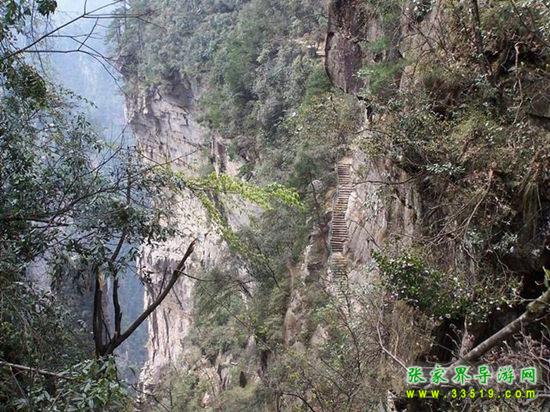舊名箱子溪,傳說(shuō)向王天子在此埋有金箔銀箱而得名。位楊家界景區(qū)東部。一溪蜿蜒中流,兩岸峰林巍峨。沿途有景點(diǎn)35處,以烏龍寨、一步登天、空中走廊最為奇特。