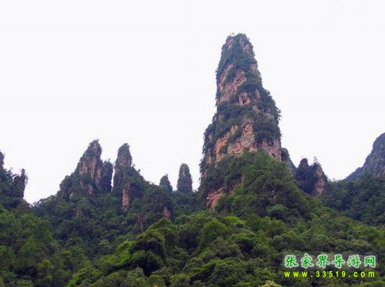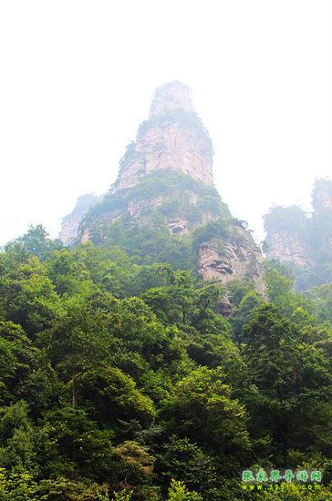 采藥老人是十里畫廊的絕景:一根獨(dú)立的石柱,很像一位老人,他彎著腰,頭上裹著一根頭巾,背上背著一個(gè)背簍,背簍里裝滿了各種各樣的中藥材。他滿臉皺紋,深邃的目光凝視著前方,神情好像有點(diǎn)憂慮。如果不是在有意識地觀賞,而是猛地一抬頭望見他,還真以為他就是某個(gè)山村里的土家族老人。