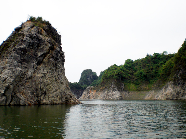 湖南省慈利縣趙家埡水庫(kù)始建于1972年,是一座以抽水蓄能發(fā)電為主,兼具蓄洪防洪、抗旱灌溉、營(yíng)林旅游、水產(chǎn)養(yǎng)殖等多功能于一體的中型水利水電骨干工程,水庫(kù)本身集雨面積33.5km2,外引集雨面積24Km2。水庫(kù)樞紐大壩為粘土斜墻堆石壩,壩底高程為500m,壩高46m,由于水庫(kù)屬封堵天然溶洞而建,大壩潛于水下,趙家埡水庫(kù)因此被稱為我國(guó)第一座“無壩”水庫(kù)。