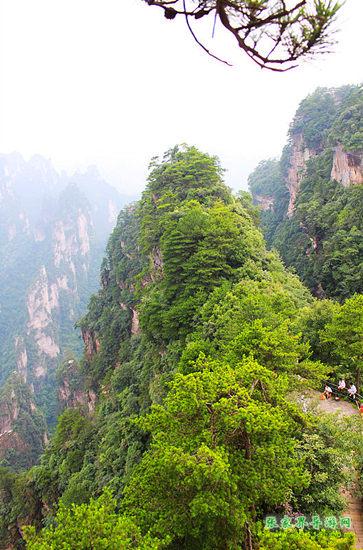 武陵源從來不缺險峰奇崖,但是它們又各有千秋,絕不雷同。一步登天就是這樣一座“個性”十足的奇峰。山峰陡峭,徒手難以登頂,游客需借助層層鐵梯,手腳并用,緩緩上行。等你跨完了最后一梯,登上了峰頂,只見一片平整的闊地,中有古松雜列,且有護欄可供依憑,頓時心胸為之一暢,真有“一步登天”之感。