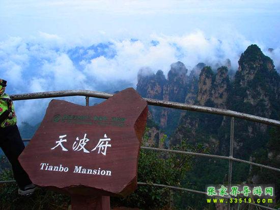天波府位于楊家界景區(qū),數(shù)十座絕壁,交纏錯(cuò)落,參差不齊,場(chǎng)面悲壯,若殘?jiān)珨鄩荆钊瞬挥筛袊@大自然的威力及滄海桑田的變幻。相傳此乃楊家“天波府”的遺址。據(jù)山西大學(xué)歷史系副教授周征松考證,景區(qū)名稱楊家界(還有上面提到的“天波府”、“宗保峰”、“六郎灣”等)都是為紀(jì)念楊家將而命名的。住在這楊家界的楊氏宗族,原來都是歷史楊家將的后代,由北到南,由江西到湖南、到湘西并經(jīng)過歷代演變,遷移跋涉而來的。