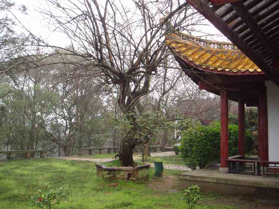 酒香亭在君山中部的酒香山峰上,掩映在翠竹藤蔓之中。入亭小憩,不僅鳥語花香,更有一股隱隱酒香撲鼻。原來此山中生長著一種開黃色小花的青藤,花香帶著酒味,這種藤叫酒泉藤,傳說用藤上小花釀的酒,喝了長生不老,可以成仙,這事傳到漢武帝耳里,他便派使臣欒巴率領(lǐng)男女?dāng)?shù)十人趕來君山,取回了仙酒。酒到京城,卻被當(dāng)時(shí)能言善辯的臣子?xùn)|方朔偷飲了。漢武帝得知,“龍顏”大怒,要將東方朔斬首。東方朔不慌不忙地奏道:“如果喝了此酒真會長生不老,可以成仙,皇上就殺我不死,如果臣被殺死了,此酒皇上喝了也不會長生不老。”武帝無言以對,便赦免了他。這事傳到了君山,人們便在酒香山修了酒香亭,以為紀(jì)念。如今的此亭,為一九八一年恢復(fù),占地近三十二平方米,高六米余,為四柱方形、磚石木混合結(jié)構(gòu),古香古色,富有詩意。