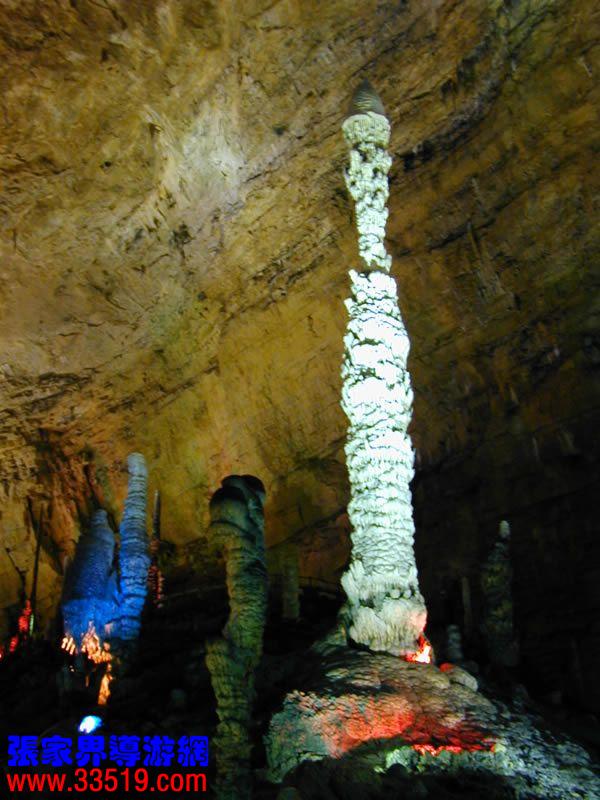 (定海神針)這是黃龍洞的標(biāo)志景點,全高19.2米,圍徑40公分,為黃龍洞最高石筍,兩頭粗中間細,最細處直徑只有10厘米,如果按專家測定的黃龍洞石筍的年平均生長速度僅0.1毫米,那么依此推算,“定海神針”生長發(fā)育至今已有20萬年歷史了,而且仍在繼續(xù)生長,如果再長6萬年,再長6米,就可直抵穹頂而“頂天立地”了!為了更好地保護這一標(biāo)志景點,黃龍洞景區(qū)管理部門特地為“定海神針”買下一億元巨額保險,創(chuàng)全國為世界自然資源性遺產(chǎn)買保險之先河