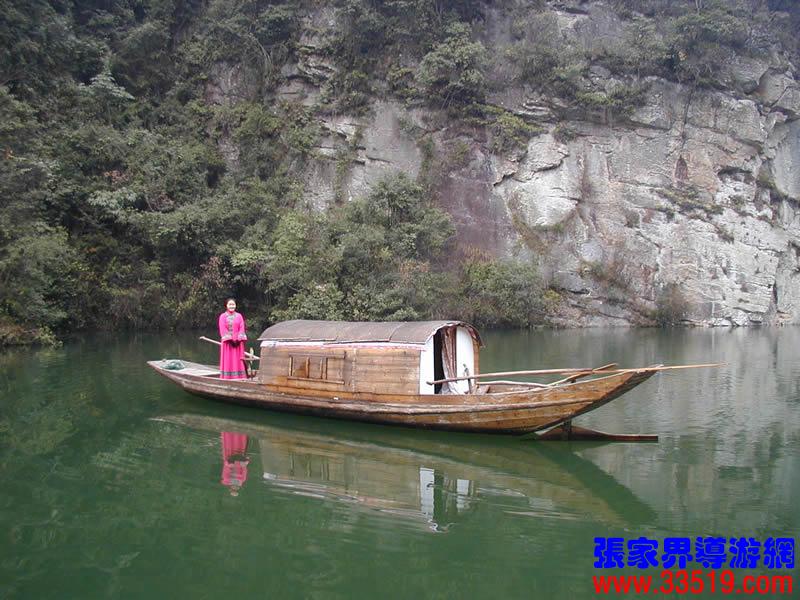 (寶峰湖)云梯直上最高層,忽見粼粼碧水深。果然高峽出平湖,人間瑤池此處尋。寶峰湖水深72米,湖長約2華里,水闊處達150余米,狹窄處公10余米,蓄水量為400多萬立方米。您腳下的這座水壩壩址,在我國水壩選址筑湖史上,堪稱奇跡:壩高80米,最寬處12米,最窄處僅3米。這座風(fēng)光秀麗的山湖始建于1974年,1979年建成,主要用于山區(qū)小水電和農(nóng)田灌溉。利用它做旅游風(fēng)景資源,則是從1984年才開始的。隨著武陵源區(qū)旅游事業(yè)的蓬勃發(fā)展,這座美麗的山湖越來越為中外游客所鐘愛。
