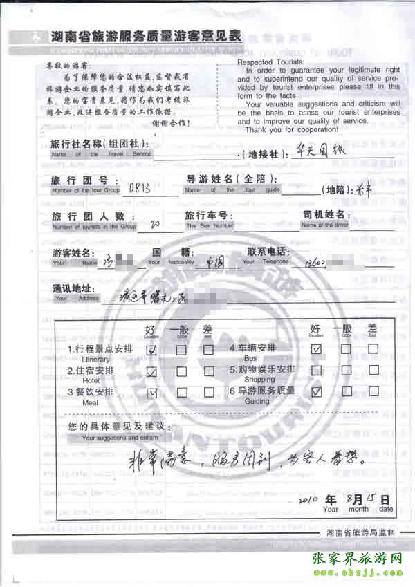 2010年8月15日清遠馮先生一行20位旅游質(zhì)量反饋:非常滿意,服務(wù)周到,為人著想