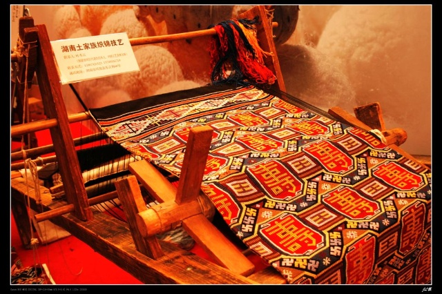 土家織錦的歷史悠久。早在漢代,它就初露頭角。《后漢書.西南蠻夷傳》記載,“武陵蠻織績木皮,染以草,衣裳斑斕……”清同治年間編修的《永定縣志》也說:“土錦績五顏經(jīng)線為之,文彩斑斕可愛,使用以為被,或作衣裙,或作巾,故又稱‘筒巾’。”